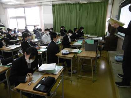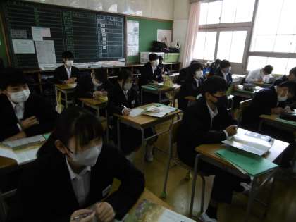 学習内容は、谷川俊太郎の「未来へ」でした。静かに先生の話をいつも聞くことができる76期生です。