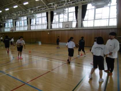 写真は上から、ラグビー部、女子バスケットボール部、男子バスケットボール部です。今日も元気に活動していました。