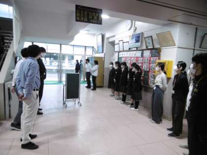 住道中学校では月に一度、全職員で生徒を迎える朝のあいさつ運動を行っています。写真は今朝のあいさつ運動の様子です。「あいさつは安心感のプレゼント」です。これからもあいさつあふれる住道中学校をめざします。