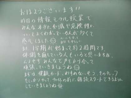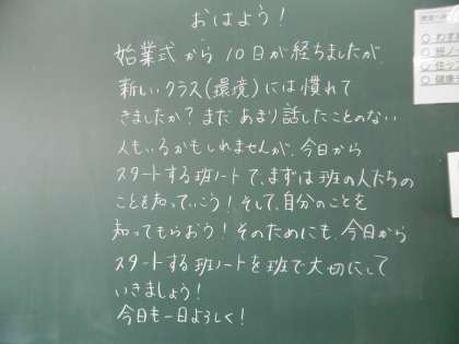 写真は2年1組と2年2組です。毎朝、担任の先生はクラスの子どもたちの顔を思い浮かべながら、メッセージを書いています。