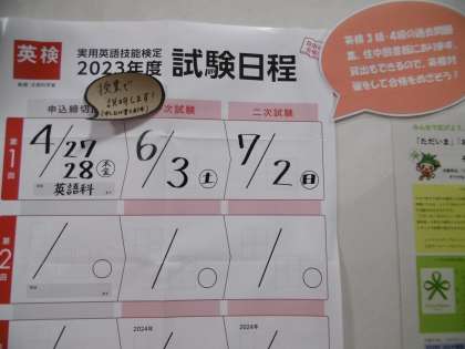 受験を希望する人は今週の27日(木)、28日(金)の登校時に申込書と検定料を添えて、職員玄関で担当の先生に申し込んでください。