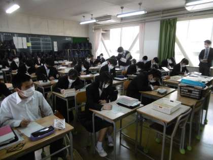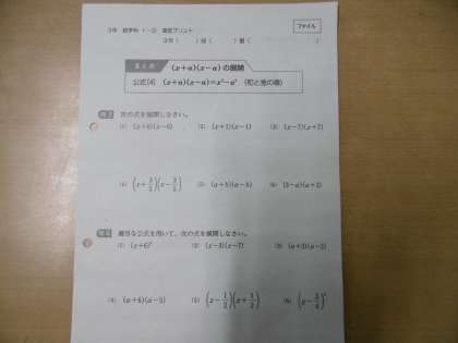 学習内容は「展開」でした。4つの公式を問題によって、上手に使い分けられるかがポイントです。確認プリントに向かう3年生の姿は「さすが受験生」を感じることができました。