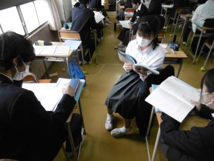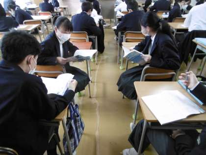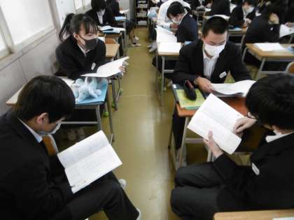 教材名は、菊池寛の「形」でした。写真は4人班で順番に教科書を読み合っているところです。