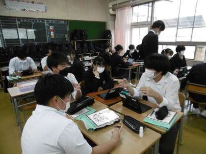 授業のねらいは「無性生殖と有性生殖の染色体の伝わり方について理解できる」でした。タブレットパソコンと学習プリントを使っての授業でした。タブレットパソコンは、授業では欠かせないツールに現在はなっています。
