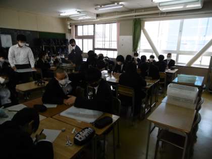 各クラスで修学旅行の班目標や学級目標について、委員長が中心となって、話し合いが行われていました。75期生の全員が楽しめる修学旅行にするための大切な目標を決める話し合いでした。各係活動もすでに活動しています。忙しい日々が続きますが、75期生のがんばりに期待してます。写真は上から、3年4組、3年3組、3年2組です。
