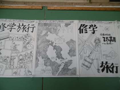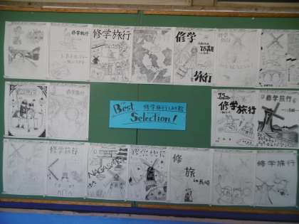 3年生も子どもたちの投票により、しおりの表紙絵が決まりました。どの表紙に決まったかは、本日配付されるしおりをご覧ください。26日(水)から始まる修学旅行が思い出いっぱいの素敵な学習になることを心から願っています。 がんばろう! 75期生!