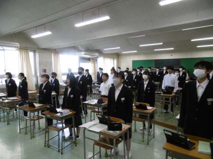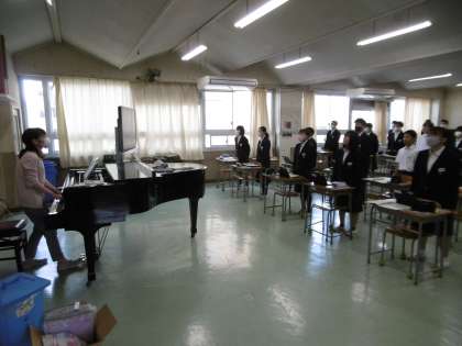 校歌の練習をしていました。廊下まで聞こえる大きな声で校歌を歌っていました。感心しました。本当に見事な歌声でした。