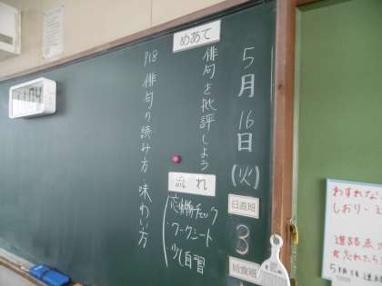 学習単元は「俳句の読み方・味わい方」、授業のねらいは「俳句を批評しよう」でした。