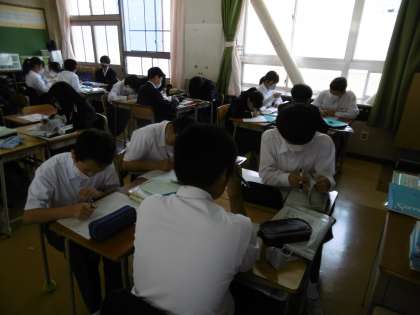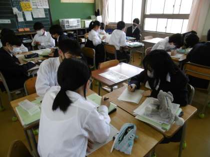 テスト前ということで、対策プリントを使って授業が進められていました。