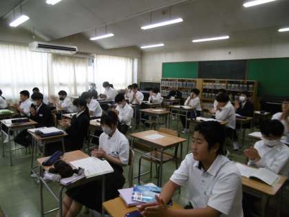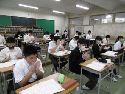 「夢の世界を」を手拍子を使って、表現していました。リズムよく、全員の動きが揃っていました。