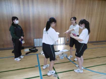 男子と同じく、女子もグループに分かれて、新体力テストの練習を今日もみんなで仲良く行っていました。練習種目は、長座、反復横跳び、握力、立ち幅跳びでした。