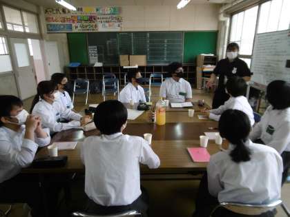 4月26日(水)のリーダー研修会に引き続いて、今日の9時から再びリーダー研修会が行われています。これからの住道中学校のことを本気で考えてくれている子どもたちです。主に生徒会役員、各学年の委員長で構成されています。担当の先生が生徒の意見や感想を書いているホワイトボードはすでにぎっしりと字で埋めつくされていました。昨年の生徒会が考えてくれたスローガンは「隠れた自分をさらけ出せ!〜そんなんめくらな始まらん〜」でした。今回のリーダー研修を経て、新しい今年のスローガンができることを期待しています。