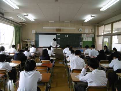 写真は上から、2年3組(理科のテスト返却)、2年1組(数学のテスト返却)です。数学では教科担当の先生から中間テストの分析をした「数学通信」が配られていました。