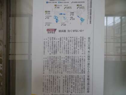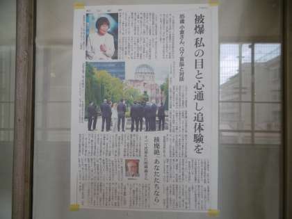 先日、広島で行われたG7サミットの記事が掲示されていました。明日から、3年生は長崎県へ修学旅行に行きます。1日目は原子爆弾平和公園で「平和の集い」を行う予定です。平和へのメッセージを読み上げ、全校生徒で作った千羽鶴を奉納してきます。