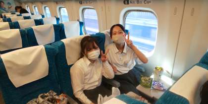 新大阪駅を出発しました。おやつをおいしそうに食べています。