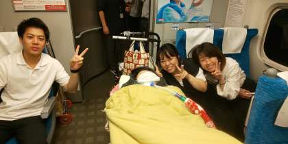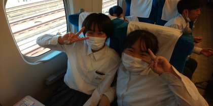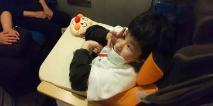 新山口駅に着きました。もうすぐ博多駅に着きます。子どもたちは変わらず元気です。