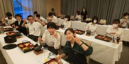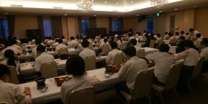 1・2組の夕食が始まりました。とても豪華な夕食です。子どもたちもおいしそうに食べてます。会話も自然と弾んでいます。