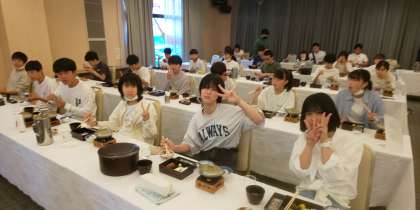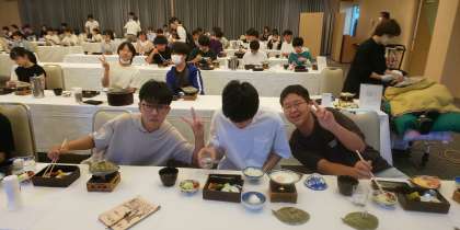 朝食が始まりました。1、2組の様子です。朝からおかわりする生徒が続出です。やはり、子どもは元気です。
