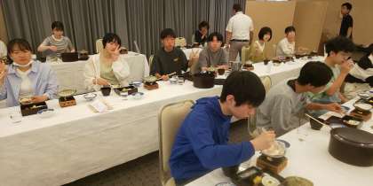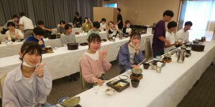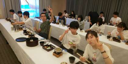 やはり、会話をしながら食べる食事は格別のようです。笑顔がよく似合う住中生です。