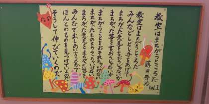 先月、各階に飾られていた掲示物を紹介します。「教室はまちがうところだ」の言葉は、私たち教員にとっても大切な言葉です。生徒が安心して授業を受けることができる環境をこれからもつくっていきたいと思います。各階の掲示物は、本校のサポートルーム担当の元教員が作成してくださっています。