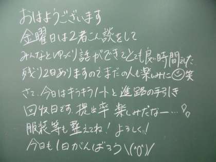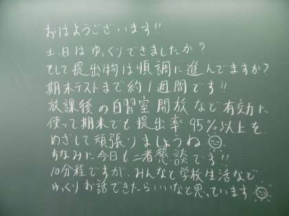 写真は3年4組と2年1組です。今日はクラスの生徒と担任が話す二者懇談二日目になります。