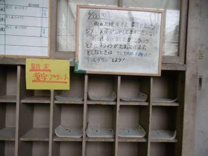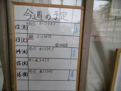 3年生の学年主任の先生が毎週欠かさず、書いてくれています。ホワイトボード下に期末テスト対策用の漢字プリントが用意されていました。