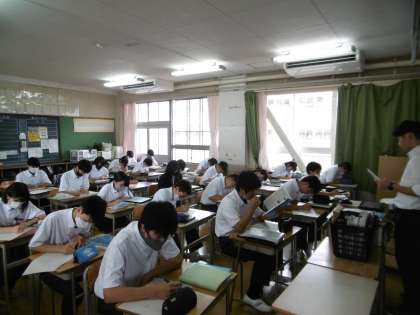 練習プリントを黙々と生徒は解いていました。テスト前の雰囲気は十分に出ていました。
