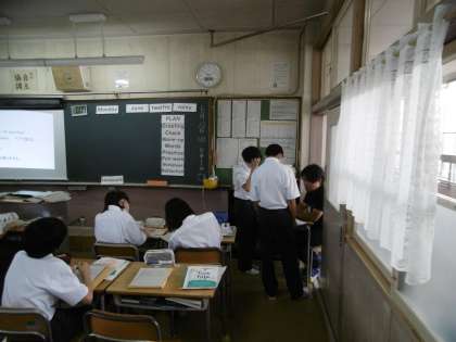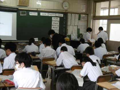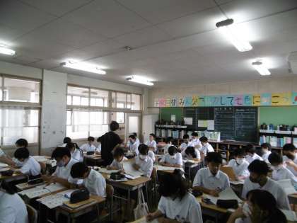 授業中に出た課題を各自で進め、できた人から教科担当の先生に見せに行っていました。77期生は先生の指示を本当によく聞くことができる学年です。