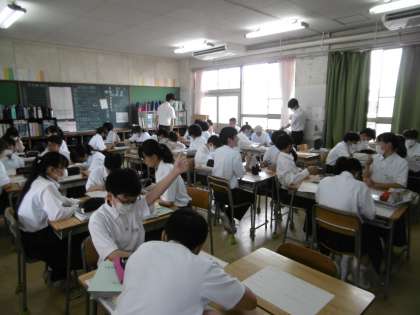 演習プリントを班で協力しながら進めていました。子どもたちは集中して授業を受けることができています。