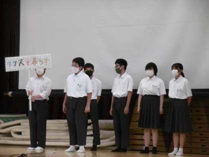 校風委員会、図書委員会、保健委員会、生徒会より、報告がありました。発表している生徒の態度は、堂々としていて今日もとても立派でした。