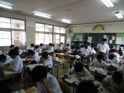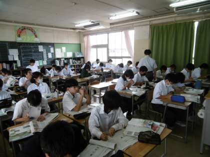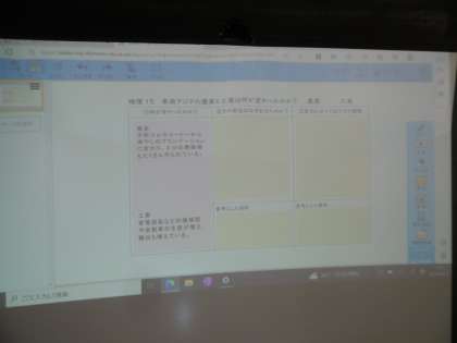授業のねらいは、「東南アジアの農業と工業の変化を知る」でした。生徒は、先生の指示をよく聞き、毎時間、意欲的に授業に参加しています。