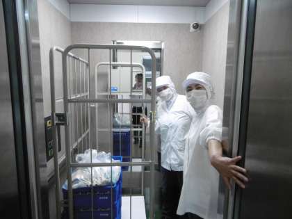 写真2枚目は、配膳員さんが毎日4階のフロアーへ給食(1年生分)を運んでくださっているところです。いつもありがとうございます。