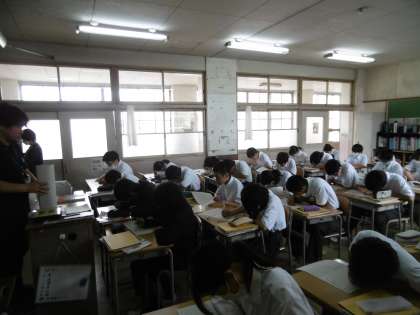 確認テスト(文法のまとめ)を実施していました。1年生にとって、来週は2回目の定期テストです。がんばりましょう。