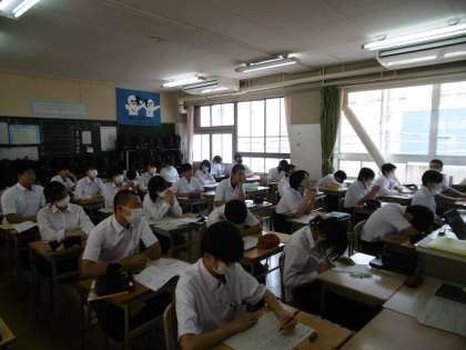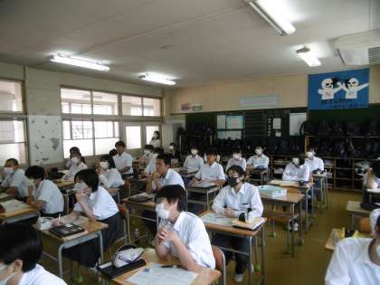 「WEBのしくみと情報の表現」が学習内容でした。教科担当の先生が作成した分かりやすいパワーポイントと学習プリントを使って、授業が進められていました。