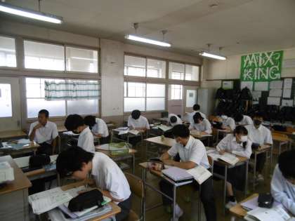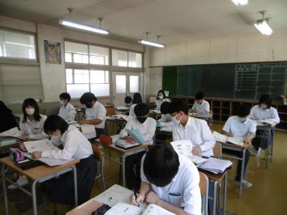 期末テスト対策プリントを静かに行っているところです。期末テストまであと2日になりました。勉強すべき時には家庭学習を一生懸命にやりましょう。