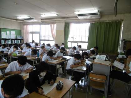 テスト対策プリントを静かに行っているところです。部活動は期末テスト2日目の6月22日(木)までありません。