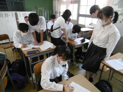 「すみスタ」とは、住中スタディの略。テスト前に全教員で行う基礎学力補充日のことです。教科は英語や数学が中心となります。写真は3年生の様子です。