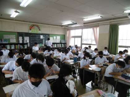期末テスト前日ということで、テスト対策プリントを黙々と全員がしていました。感心しました。