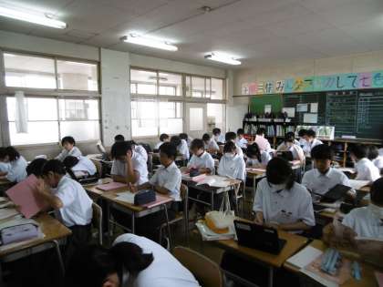 テスト勉強をしていました。勉強(家庭学習)すべき時は、一生懸命に勉強する住中生であってほしいと思います。77期生のがんばりを期待しています。