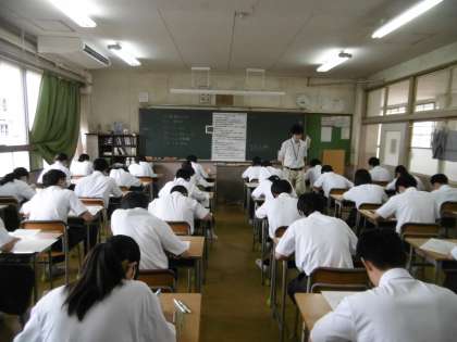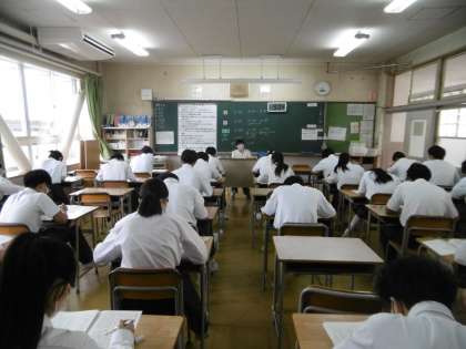 写真は上から、3年1組、2年1組、1年4組です。今日は1、2年生の英語でリスニングテストがあります。最後まであきらめずに一生懸命にテストを受けている住中生の姿を期待しています。