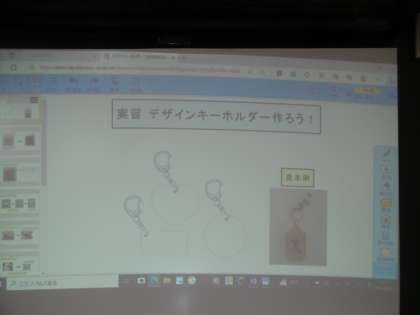 授業のねらいは「デザインキーホルダーを作ろう」でした。生徒は自分のデザインしたキーホルダーを作るために、一生懸命にたくさんのアイディアを考えていました。とても楽しそうに授業に参加していました。