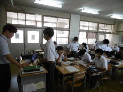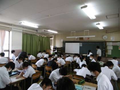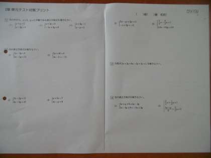 写真は「単元テスト対策プリント」を4人班で解いているところです。友だちに教えた時の「分かった!」の声がその生徒のやる気をさらに高めていました。
