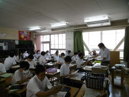 夏休みの宿題になる「税の作文」の原稿用紙を教科担当の先生が配っていました。国民の三大義務のひとつである「納税」について、一人ひとりしっかりと考え、文字に書きとめてほしいと思います。