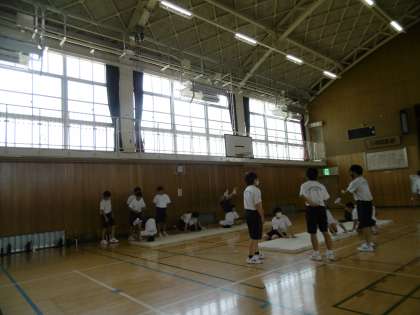 学習単元は「マット運動」でした。今日も体育館にエアコンがついていたので、涼しい気温の中での体育授業でした。子どもたちも笑顔でした。