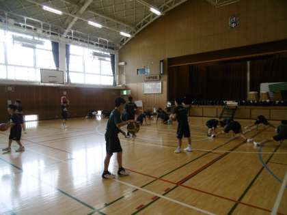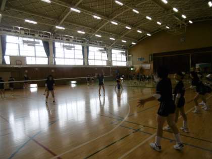 写真は上から、バレー部、男子バスケットボール部です。バレー部は土曜日の公式戦で勝利をおさめ、次の試合に向けて気持ちのこもった練習ができていました。
