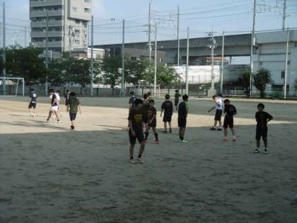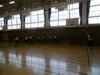 写真は上から、ラグビー部、バレー部、女子バスケットボール部です。体育館はエアコンをつけているので、涼しい中での朝練でした。子どもたちは今日も一生懸命でした。