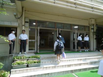 生徒会役員があいさつ運動を行っていました。登校してくる仲間に、元気よくあいさつをしていました。