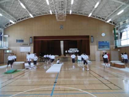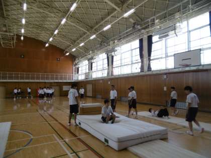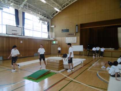 エアコンの効いた涼しい体育館での跳び箱でした。過ごしやすい気温ということもあり、子どもたちはとても意欲的でした。