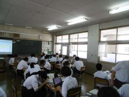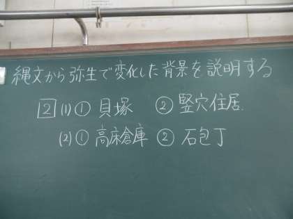 授業のねらいは「縄文から弥生で変化した背景を説明することができる」でした。今日もタブレットパソコンとワークシート、学数班(4人班)がうまく活用できていました。