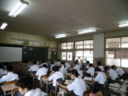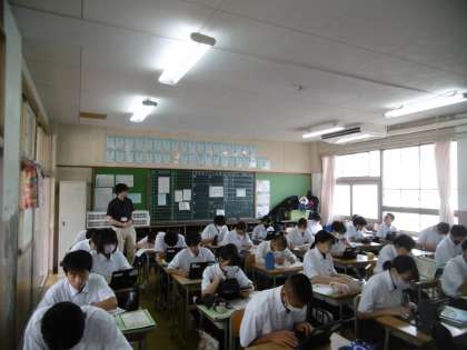 夏休みの宿題が配られました。写真は、宿題を黙々とやっているところです。誰ひとりしゃべっている生徒はいませんでした。